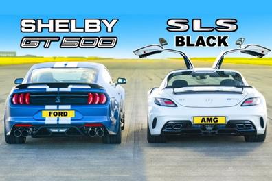 Дрэг-гонка: Mercedes-Benz SLS AMG Black против Ford Mustang GT500