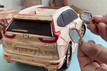 Мастер изготовил из деревянных остатков масштабную модель кроссовера Honda