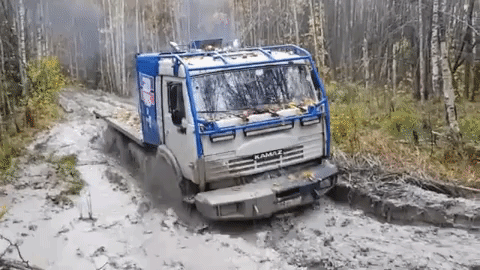 Посмотрите, как гоночный КамАЗ штурмует осеннее бездорожье