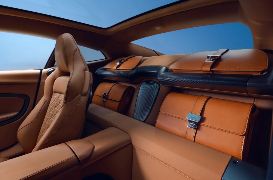 Новая астоновская стилистка пока не имеет названия, что, впрочем, не мешает ей быть довольно эффектной. Ключ к подчёркнуто классическим пропорциям — растянутая на 80 мм колёсная база. Отсюда этот стремительный силуэт и длиннющий капот, снабженный подсмотренными у формульных болидов жалюзи.
