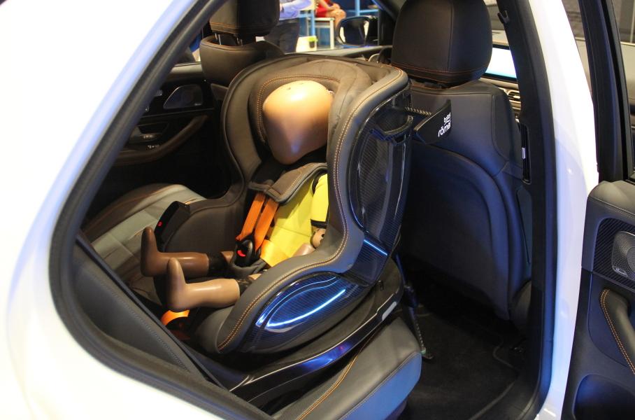 Кстати, здесь же нам показали перспективное детское сиденье — с электроникой, интегрированной в систему превентивной безопасности Pre-Safe. Она контролирует правильность крепления кресла — подсказки выводятся прямо на дисплей мультимедиа-системы. Туда же можно вывести и изображение с камеры, встроенной в кресло — например, чтобы посмотреть, заснул ли ребёнок.