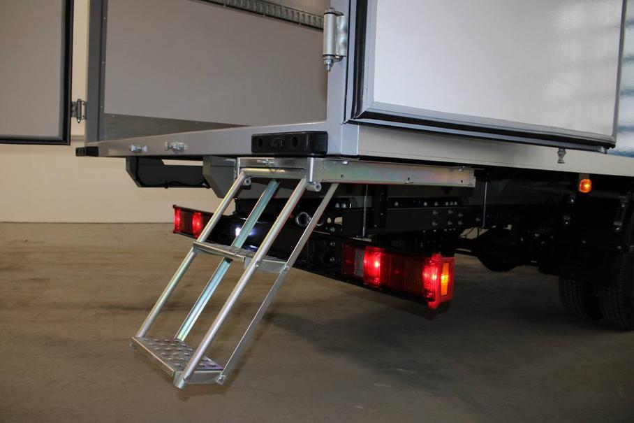 Особое внимание авторы проекта уделили внутреннему убранству: создатели фургона предусмотрели напольные петли, боковые рейки, защитные накладки, внутреннее освещение и выдвижную лестницу.