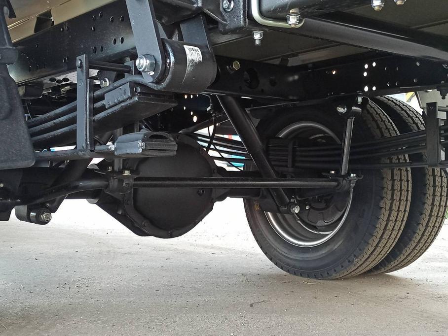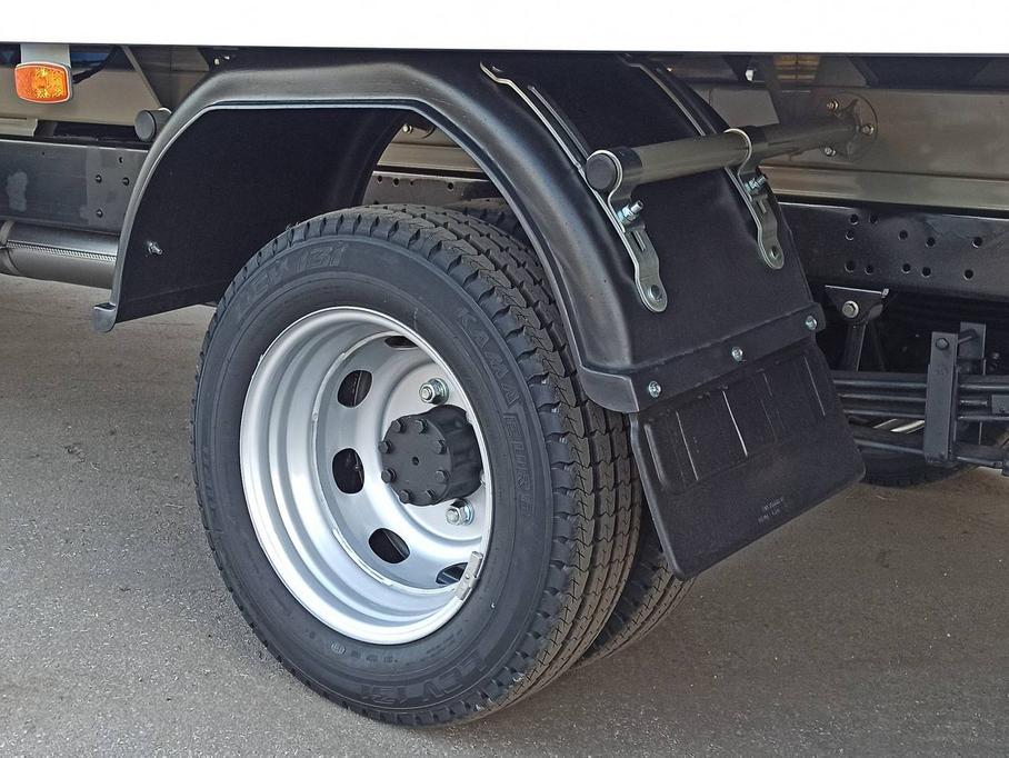 На заднем портале установлены резиновые отбойники — это важная доработка: если водитель не заметит препятствие, сдавая назад, грузовичок сначала упрётся этим буфером, а не кузовом.