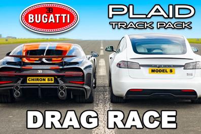 Видео: гиперкар Bugatti Chiron Super Sport свели в гонке с электромобилем Tesla Model S Plaid