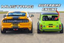 Дрэг-гонка: Ford Mustang GT против MINI с мотором от супербайка