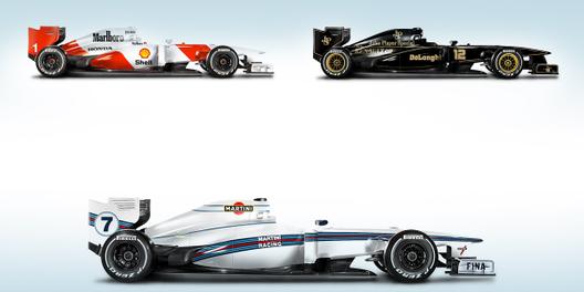 Как выглядели бы современные машины Формулы-1 в раскраске прошлых лет