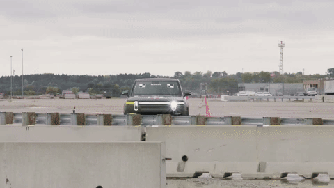 Видео: электрический пикап Rivian R1T против дорожных ограждений
