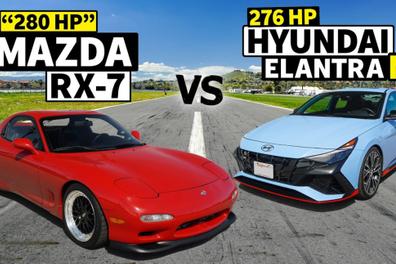 Видео: Mazda RX-7 и Hyundai Elantra N сравнили в гонке
