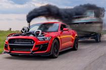 Посмотрите, как дизельный Mustang с буксом тащит десятиметровый катер