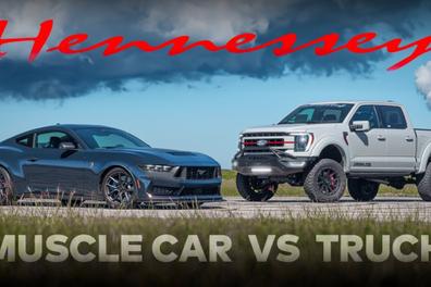 Видео: Hennessey устроила дуэль доработанного Ford F-150 и стандартного Mustang Dark Horse