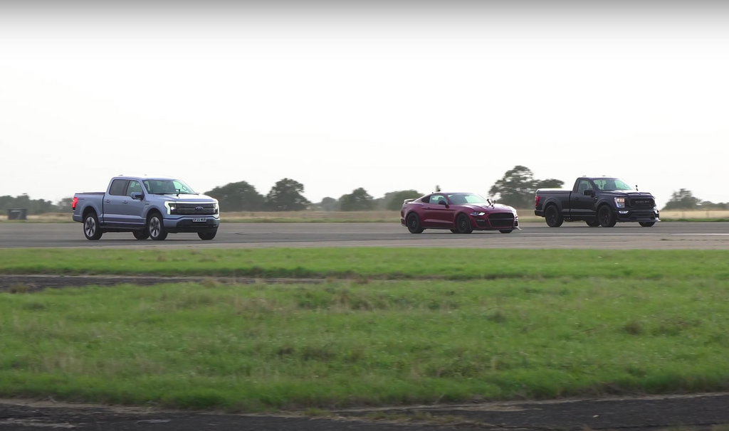 Электропикап сравнили с гонке с пикапом и спорткаром с V8