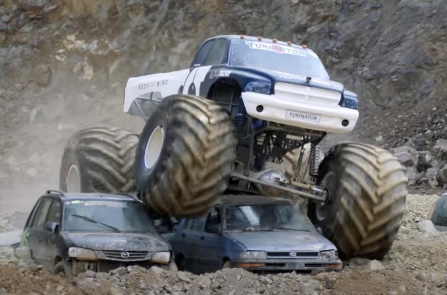 Видео: пилоты Формулы-1 устроили гонки на монстр-траках