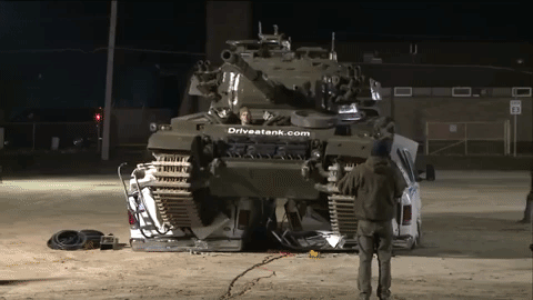 Посмотрите, как танк за раз уничтожает сразу два фургона