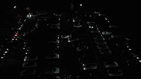 Электромобили заняли огромную парковку и устроили светомузыкальное шоу