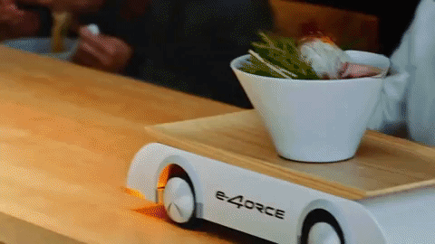 Поднос на колесах c полным приводом Nissan e-4orce развозит лапшу