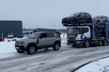 Посмотрите, как новый Land Rover Defender тянет 40-тонную фуру в гору