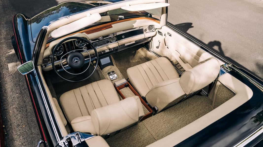 В случае с 280SL это означает аккумуляторную батарею ёмкостью 62 киловатт-час, обеспечивающую водителю запас хода в 280 километров, а также 400-вольтовая трансмиссия с трёхфазным электродвигателем с постоянными магнитами мощностью 300 лошадиных сил и 502 Нм — вдвое больше, чем характеристики оригинального двигателя.