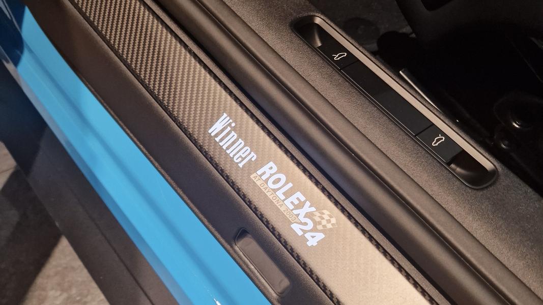 Для салона гонщик выбрал расширенную отделку чёрной кожей с контрастной строчкой GT Silver и дополнительной отделкой материалом Race-Tex, покрывающим приборную панель. Для автомобиля также заказан пакет Club Sports. Интерьер украшен накладкой на пороги из углеродного волокна, надпись на которой имитирует гравировку на часах Rolex, вручаемых победителям гонки «24 часа Дайтоны». Гонщик намерен использовать Porsche 911 GT3 RS как повседневную машину, но только в тёплое время года и после нанесения защитного покрытия на кузов.