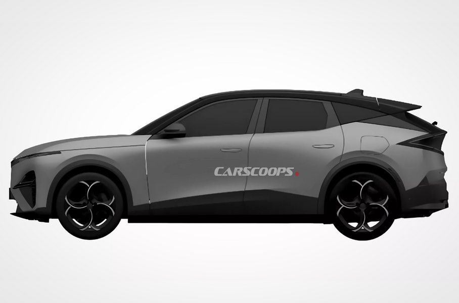 Снимки с испытаний кроссовера, на которых он завернут в камуфляж, показывают ниспадающую крышу со спойлером и трехспицевые колесные диски.