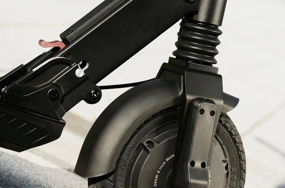 К тому же E-Scooter оснащен барабанными тормозами и дисплеем, куда выводится информации о запасе хода, состоянии батареи, скорости и прочем. Есть даже навигационная система, которая покажет самый короткий маршрут до пункта назначения.