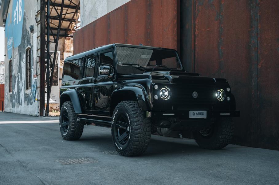Комплект создали для неназванного клиентаНовый проект получил название Defender V8 Hardtop. За этим именем скрывается внедорожник Land Rover с новым углепластиковым капотом и решёткой радиатора с интегрированными в неё светодиодными фарами, появились накладки на колёсные арки и 18-дюймовые диски с внедорожными покрышками Cooper Discovered STT Pro.