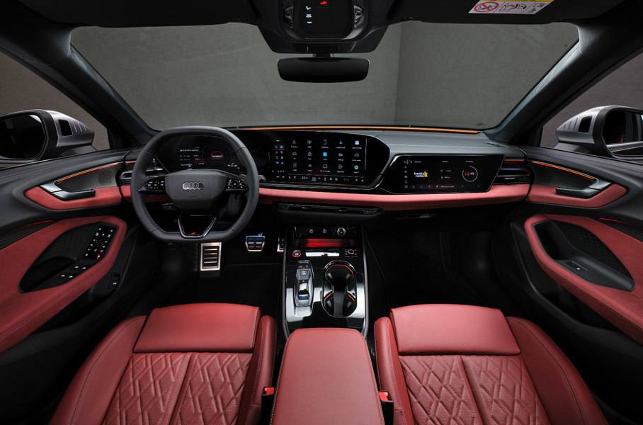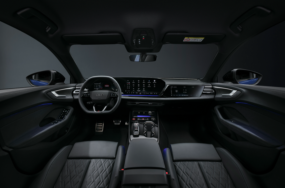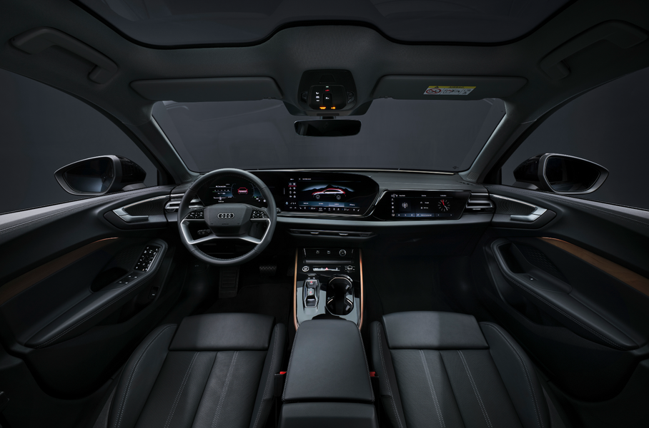Кластер из трех дисплеев в салоне Audi называет «цифровой сценой». В него входят 11,9-дюймовая приборная панель, центральный сенсорный монитор диагональю 14,5 дюйма и дополнительный экран для пассажира на 10,9 дюйма. Изображение на последнем можно скрыть от водителя.