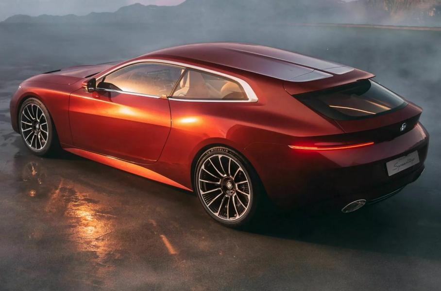 Трёхдверку выпустят небольшой серией для избранных рынковBMW Speedtop c эффектным кузовом шутинг-брейк была раскрыта накануне премьеры. Эксклюзивный универсал сделан на основе купе M8 Competition, но салон рассчитан на двоих: задние кресла убраны в угоду специальным нишам для багажа. Груз можно закрепить кожаными ремнями, также место для поклажи есть за экстравагантной крышкой багажника.