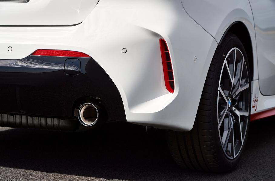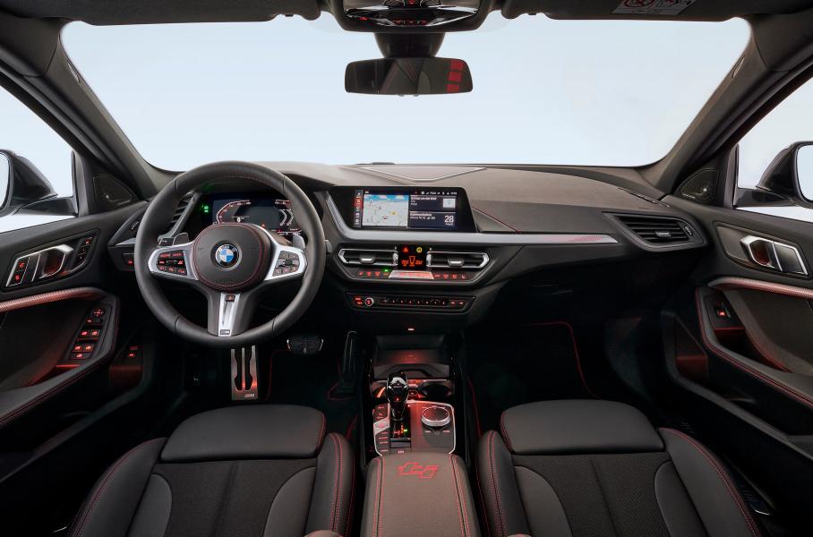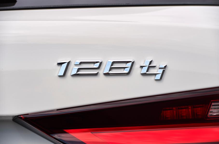 Визуально отличить BMW 128ti от других модификаций с пакетом M Sport можно по ярким акцентам на переднем бампере и порогах, плюс декору Extended Shadowline с черными элементами (входит в базовое оснащение машине для рынка Германии), стандартным 18-дюймовым колесам, которые без доплаты можно «обуть» в цепкие шины Michelin Pilot Sport 4, и 90-миллиметровым насадкам на выхлопные патрубки. В салоне из новшество — комбинированная обивка из искусственной кожи Sensatec и ткани, красные акценты и просрочка, а также аксессуары M: ремни безопасности, накладки на педали и пороги.