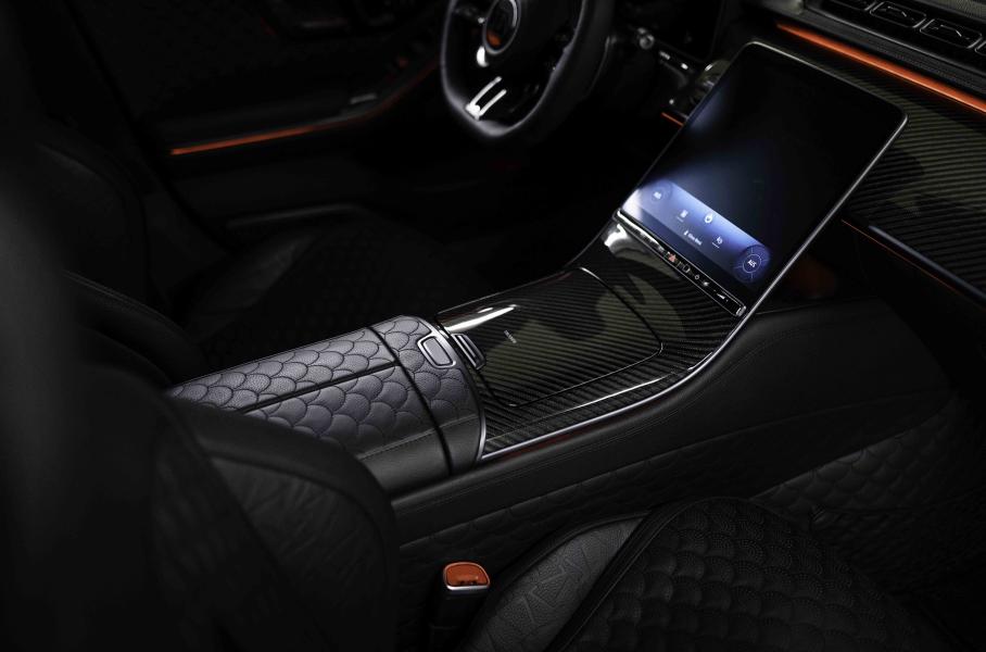 Помимо этого, седан от Brabus получил обвес из углепластика с передним сплиттером, испытанный в аэродинамической трубе, карбоновые насадки на боковые воздухозаборники и фирменную решетку радиатора с литерой B, оптимизирующую поступление воздуха в моторный отсек.