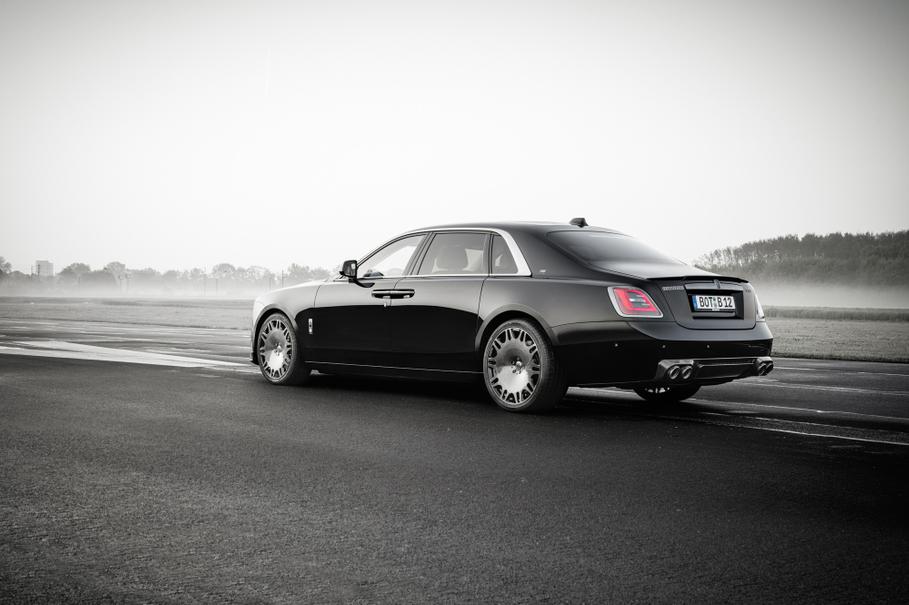 Немецкому тюнингу подвергся «младший» седан GhostВпрочем, статус исходной модели не сказался на программе тюнинга. Специалисты немецкой компании разработали для Ghost фирменный аэродинамический обвес из углепластика, который может быть оформлен не только в матовом или глянцевом варианте, но и окрашен либо в цвет кузова, либо в контрастный оттенок. Заявлено повышение прижимной силы с новыми деталями. Седан получил 22-дюймовые колеса Brabus Monoblock M Platinum Edition, дизайн которых оптимизирует вентиляцию и охлаждение тормозов.