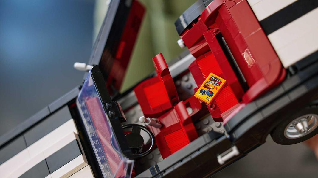 Под открывающимся капотом можно увидеть миниатюрный двигатель, украшенный наклейкой 302, которая отсылает к культовому двигателю объемом 302 кубических дюйма.