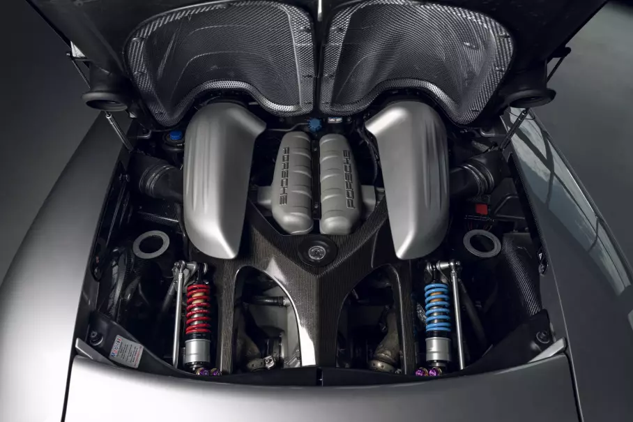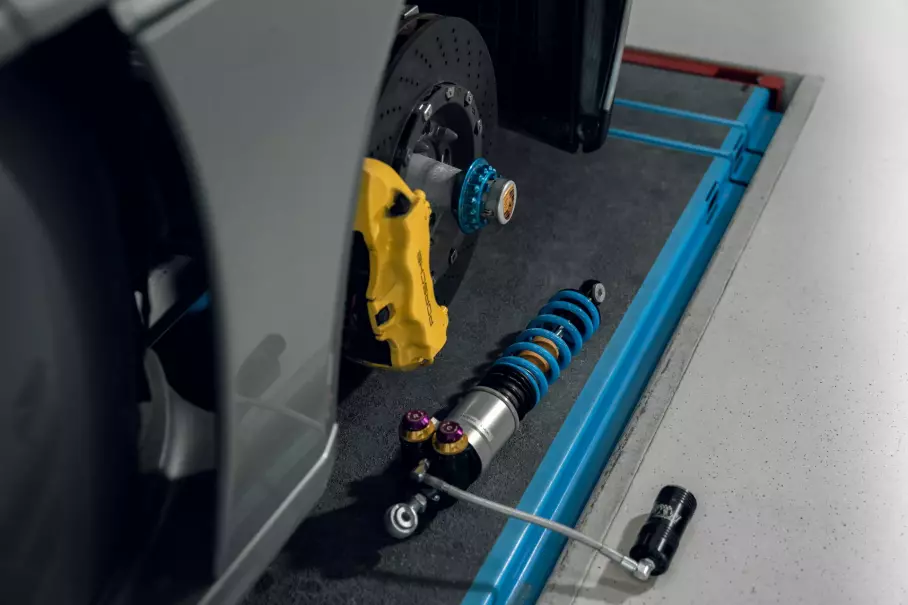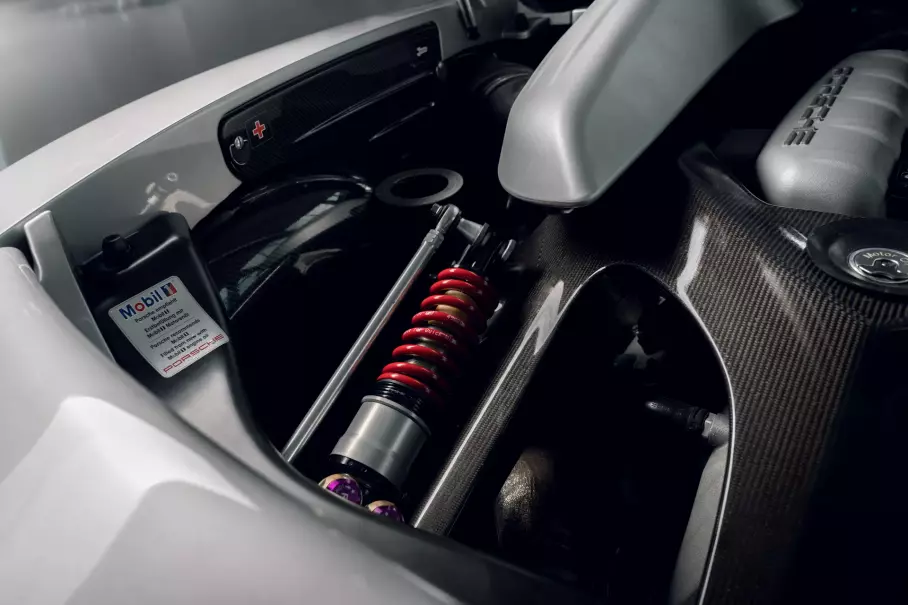 Автомобиль получил небольшой тюнинг от KWВ 2003 году суперкар был вершиной инженерной мысли Porsche, но за последующие 20 лет технология подвески значительно продвинулась вперед — в итоге компания KW, известная своими подвесками, представила комплект регулируемых амортизаторов для Carrera GT. С завода уже предусмотрены три варианта настроек, первый из которых практически повторяет заводские установки, второй делает машину более комфортной, а третий — ориентирован на эксплуатацию на гоночной трассе.