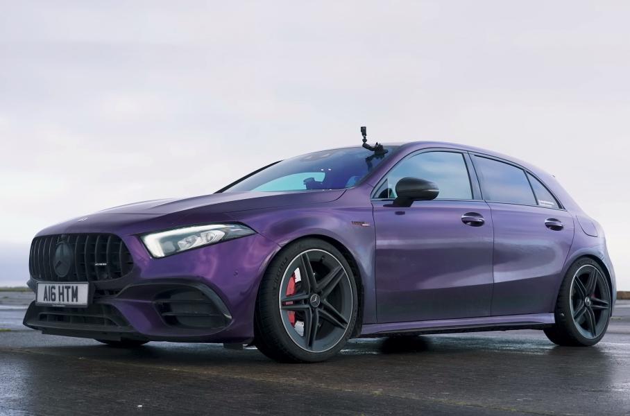 На другом полюсе Mercedes-AMG A 45 S. Самый мощный хэтчбек из Штутгарта весит 1625 килограммов, а с 2,0-литрового двигателя снимают 503 лошадиные силы (+82) и 610 Нм крутящего момента (+110). Тяга передаётся через 8-ступенчатый «робот» и систему полного привода.