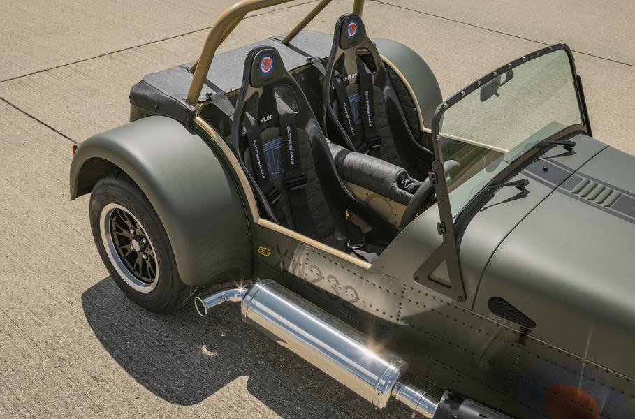 Для большей эффектности родстеру добавили трехступенчатую систему включения зажигания, а аккумулятор упаковали в ящик от боеприпасов. Двигатель меж тем остался как у обычного Seven 360 — атмосферная «четверка» 2.0 Ford Duratec мощностью 183 лошадиные силы и 194 Нм крутящего момента. Через пятиступенчатую «механику» мотор приводит задние колеса и позволяет разгоняться до 60 миль в час (97 км/ч) за 4,8 секунды. Паспортная максималка Seven 360 — 209 километров в час.