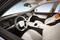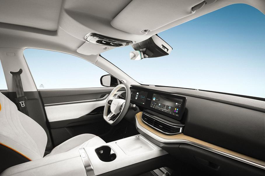 В салоне — сдвоенный экран виртуальной панели приборов и мультимедийной системы и минимум физических кнопок. Диагональ каждого из дисплеев — 12,3 дюйма. Есть у кроссовера обогрев и вентиляция сидений, передние кресла с функцией массажа, круиз-контроль, системы предупреждения о выходе из полосы движения и о столкновении. В целом уровень оснащения богатый для электрокара среднего ценового сегмента.