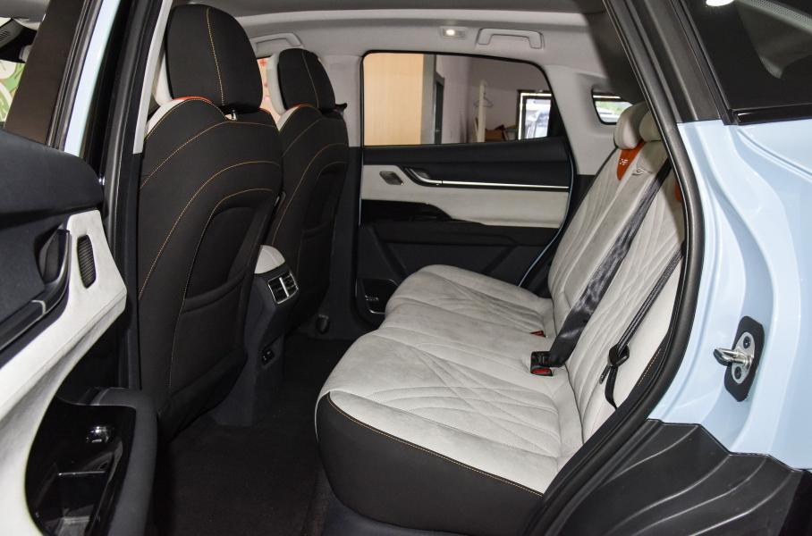 Аналоговых клавиш нет вовсе: все функции активируются через тачскрин, есть виртуальная приборная панель с козырьком и трёхспицевый мультируль в духе кроссоверов Exeed. Из необычных дизайнерских решений — дверные ручки, как продолжение декора, и трёхцветная отделка салона. А ещё у Chery eQ7 неординарный экстерьер.