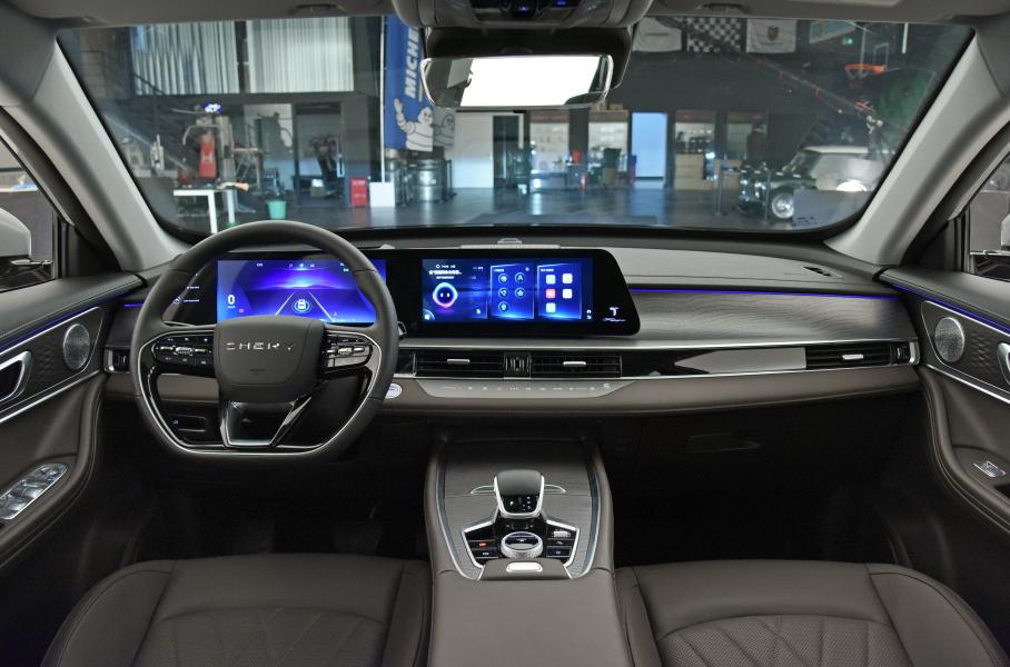 Изменения ограничились экстерьером, ведь дизайн интерьера у всех Chery Tiggo 8 Pro одинаковый. Ставка сделана на кластер с парой 12,3-дюймовых дисплеев; особенностями «восьмёрок» с приставкой Pro являются усечённый руль и более дорогие отделочные материалы. Второй ряд сидений можно сдвигать продольно целиком или по частям, на галёрке — два кресла с подстаканниками.