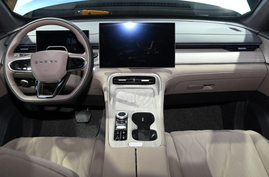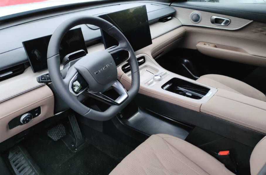 Что касается Tiggo 8, который прочат на экспорт, то он больше похож на актуальный на сегодняшний день 8 Pro Max. У такого кроссовера традиционные фары, соединенные с решеткой радиатора с иным рисунком, и большие воздухозаборники под ними. Однако ручки дверей у него тоже скрытые, как и у «китайской» версии. В салоне видны те же дисплеи, но руль попроще.