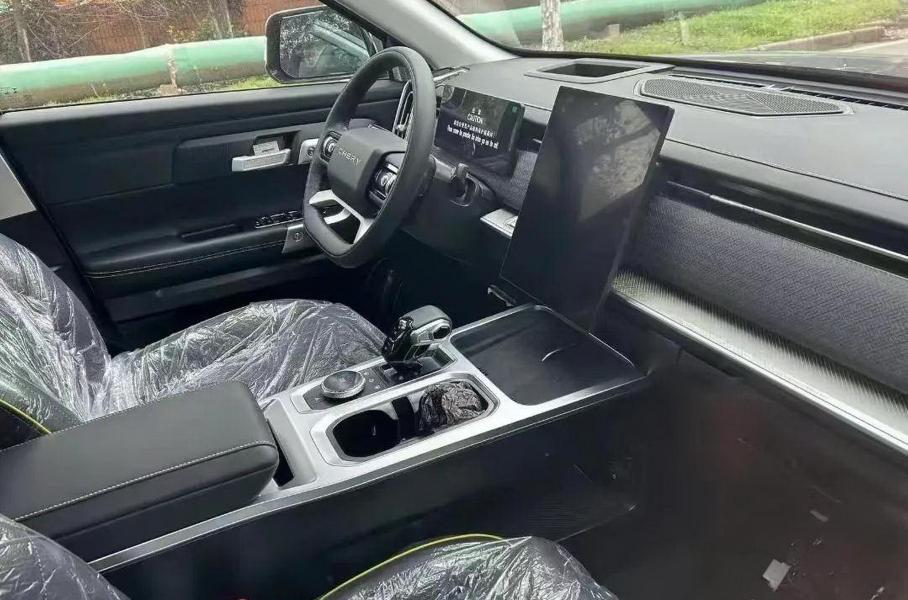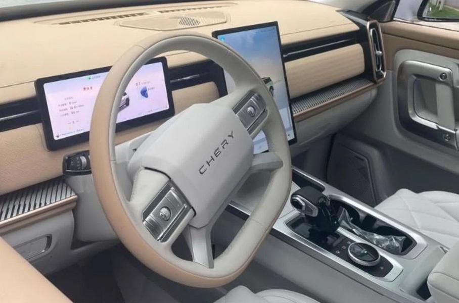 В салоне подражания другим моделям Exeed не замечено: архитектура передней панели скорее напоминает о Tesla, а нарочито грубоватое оформление дверных карт отсылает к Land Rover Defender. Перед водителем широкоформатный экран «приборки» без козырька, вся информация о машине выводится на 14,8-дюймовый вертикальный планшет.