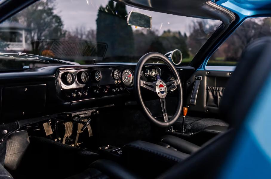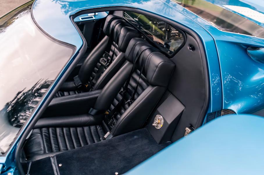 Всего Ford Advanced Vehicles построила три десятка дорожных GT40 Mk I. От гоночных машин они отличались лишь спицованными колесами, напольным покрытием, карманами в дверях и прикуривателем. Спорткар оснащен двигателем V8 4.7 (390 л.с., 447 Нм) от «Мустанга» и пятиступенчатой «механикой» ZF, а его салон скомпонован, как у «боевых» прототипов: с правым расположением руля и рычага коробки передач. Такое решение обеспечивало лучшую обзорность и развесовку в поворотах на европейских трассах, где движение, как правило, было по часовой стрелке.