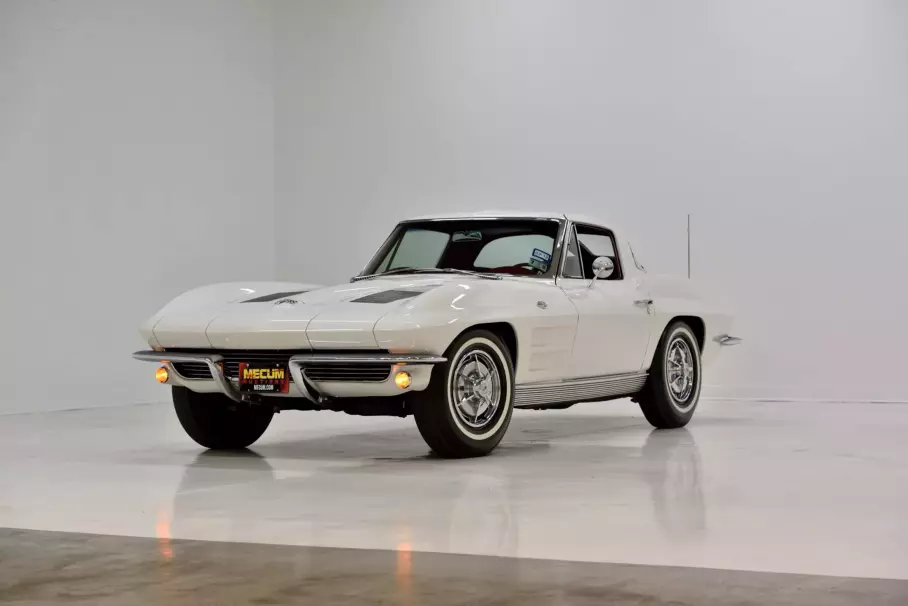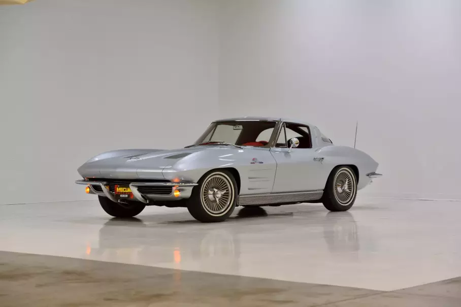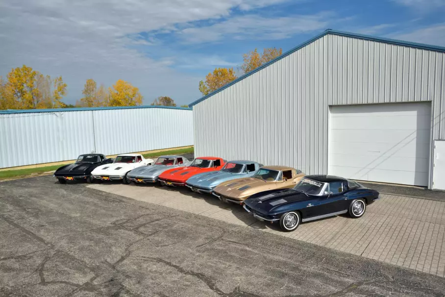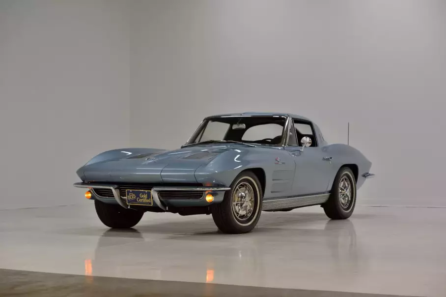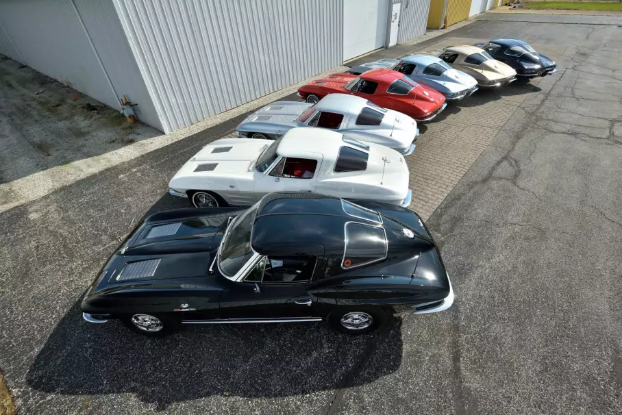 Все автомобили относятся к 1963 году выпускаВсего было выпущено около 10 000 автомобилей 1963 года, из которых один фанат модели купил сразу семь экземпляров — по одному каждого доступного для того модельного года цвета. Серебристо-синий спорткар — представитель примерно 1300 выпущенных купе с топовым 360-сильным инжекторным 5,4-литровым V8.