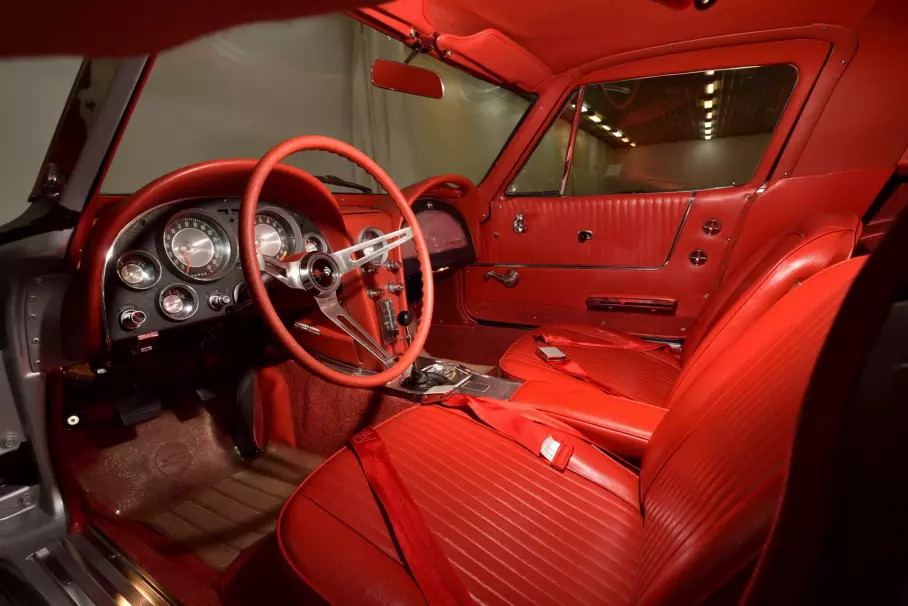 Алая двухдверка с чёрным салоном также прошла реставрацию. Ещё один Corvette С2 отличается редким песочным цветом, а тёмно-синий спорткар эксклюзивен вдвойне — во-первых, это один из 199 автомобилей с пакетом Z06, во-вторых, он конвертирован в праворульный, для рынка Австралии.