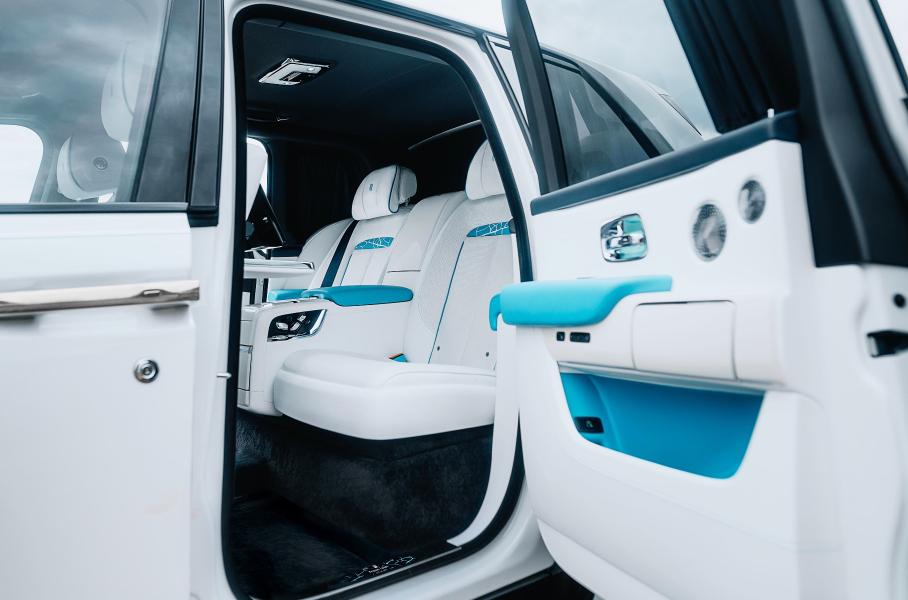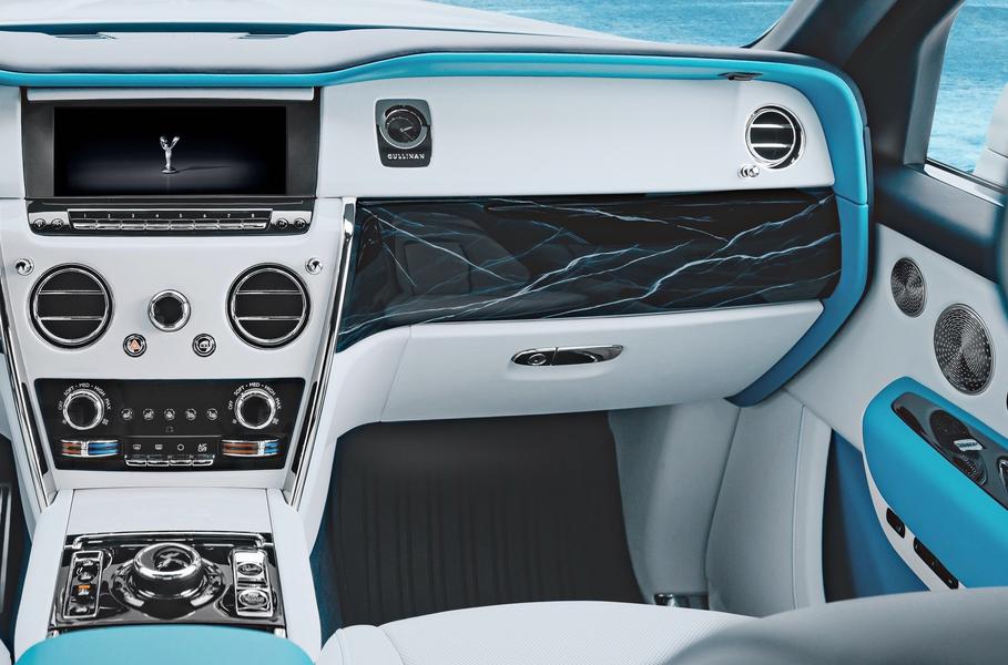 Вставки на передней панели и откидные столики в Cullinan Frozen Lakes расписаны вручную. Полосы имитируют трещины во льду и нанесены красками разных оттенков, чтобы придать узору трёхмерности. За серию композиций — всего их пять — отвечает один художник. Таким образом достигается целостность и последовательность рисунков. Потолок Starlight Headliner в «замёрзших» Cullinan выполнен в стиле Craked Ice («треснутый лед»). Его изготовление занимает 18 часов, тогда как на роспись одной декоративной панели уходит до двух недель.