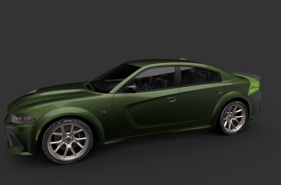 Вдобавок Challenger Scat Pack Swinger и Charger Scat Pack Swinger положены 20-дюймовые колеса Gold School, черные шестипоршневые тормозные суппорты Brembo, алюминиевые накладки с текстурой «под дерево» и обивка сидений из кожи «наппа» и алькантары. Есть выбор цвета кузова — темно-зеленый F8 Green, кислотный Sublime Green или белый White Knuckle. У купе к тому же покрашен в золотистый воздухозаборник-шейкер.