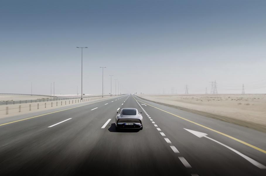 Маршрут мерседесовцы проложили по городским улицам и пустыне, где стояла традиционная для Аравийского полуострова жара: +34 градуса. Такие условия как нельзя лучше подходили для проверки работы теплового насоса, пассивной системы терморегуляции батареи и 117 солнечных ячеек, встроенных в крышу EQXX. Они заряжали компактный литий-железо-фосфатный аккумулятор, к которому подключены вспомогательные потребители — от освещения до климатической установки и медиасистемы. За время поездки солнечная крыша дала 1,8 киловатт-часа электроэнергии, добавив к общему запасу хода около 24 километров.