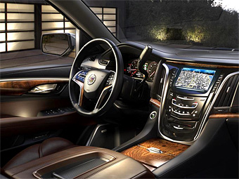 Дизайн интерьера и центральной консоли внедорожника выполнен в стилистике новых CTS, ATS и XTS. Модель получила отделку салона кожей, черным «рояльным» лаком и вставками из натурального дерева. Кроме того, Escalade обзавелся полностью цифровой панелью приборов и мультимедийным комплексом CUE с большим сенсорным дисплеем.