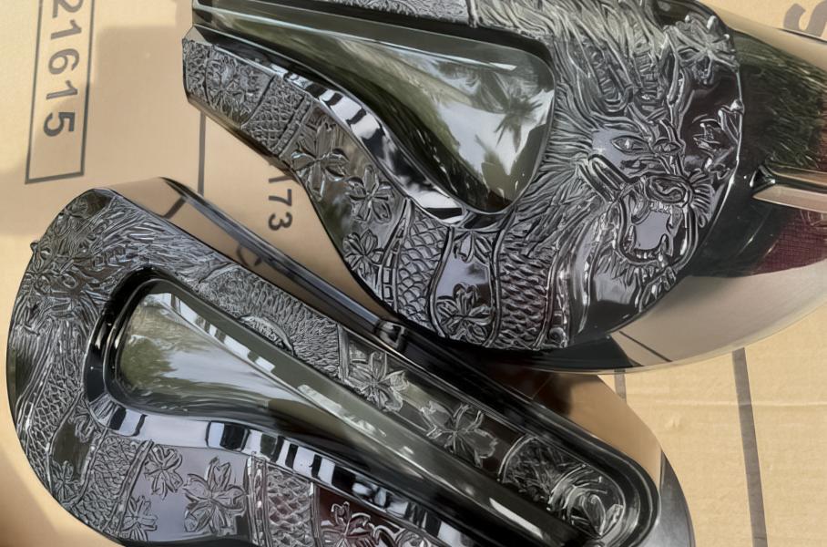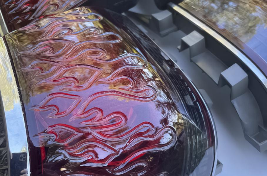 Судя по галерее на сайте Etched Out, дело не ограничивается кастомом фонарей – украсить узором можно и рычаг коробки передач. Еще одна доступная услуга – полировка оптики.