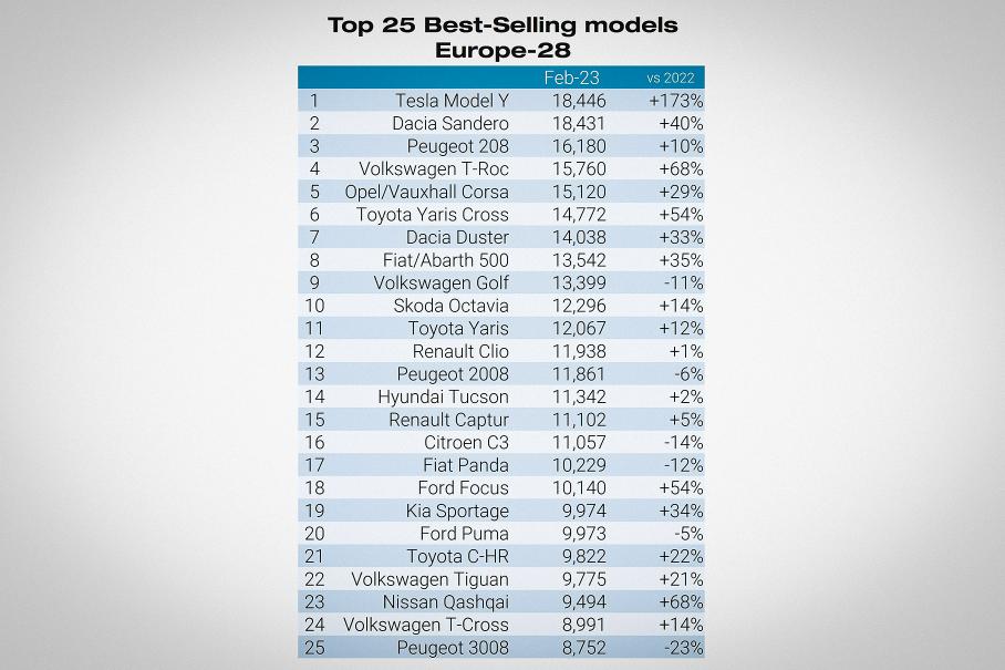 В целом же европейский рынок в феврале 2023 года преодолел отметку в 900 тысяч проданных автомобилей, что на 12 процентов больше, чем в феврале 2022-го.