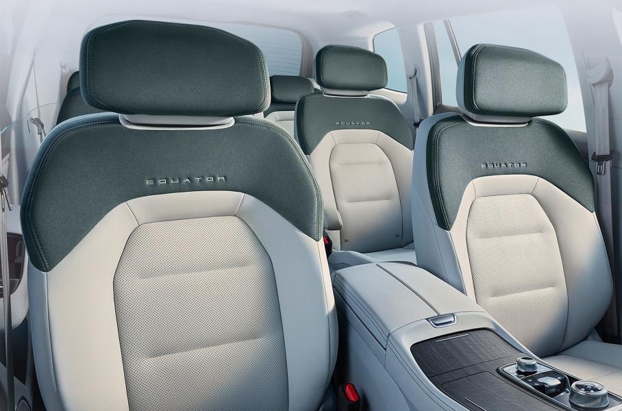 Салон «Экватора» по-прежнему семиместный, причём выполнен по схеме 2+2+3: на втором ряду у него раздельные «капитанские» кресла с электроприводом, а сзади стоит диванчик на троих седоков. Перемены внутри минимальные: появились передние кресла измененной формы и комбинированная отделка кожзамом и искусственной замшей.