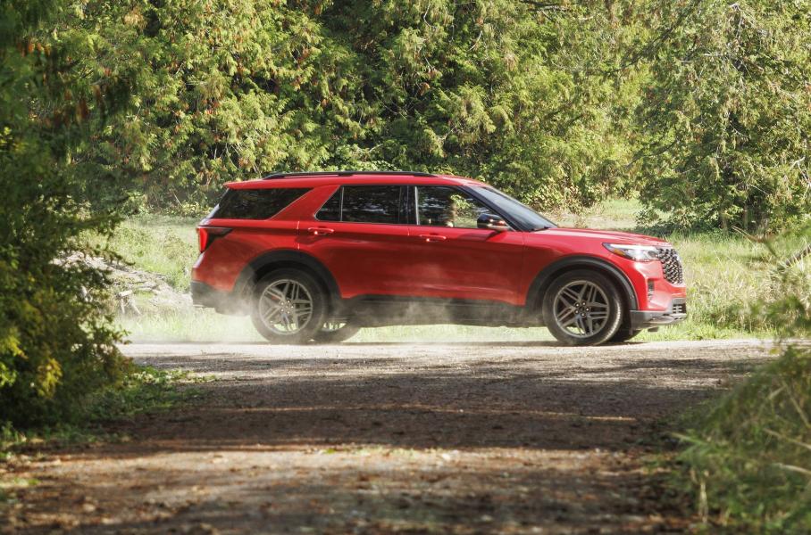 Explorer для США обновили не по китайскому сценариюВнедорожник Ford Explorer 2025 модельного года можно узнать по пересмотренной светодиодной оптике и иной форме радиаторной решетки, доступной в двух вариантах дизайна — у обычных версий рисунок в виде крупных ячеек, а у «спортивных» ST-Line и ST — мелкая сетка. Кроме того, обновились бамперы «по кругу» и иначе выглядит багажная дверь. В результате американский Explorer всё-таки заметно отличается от китайского варианта.